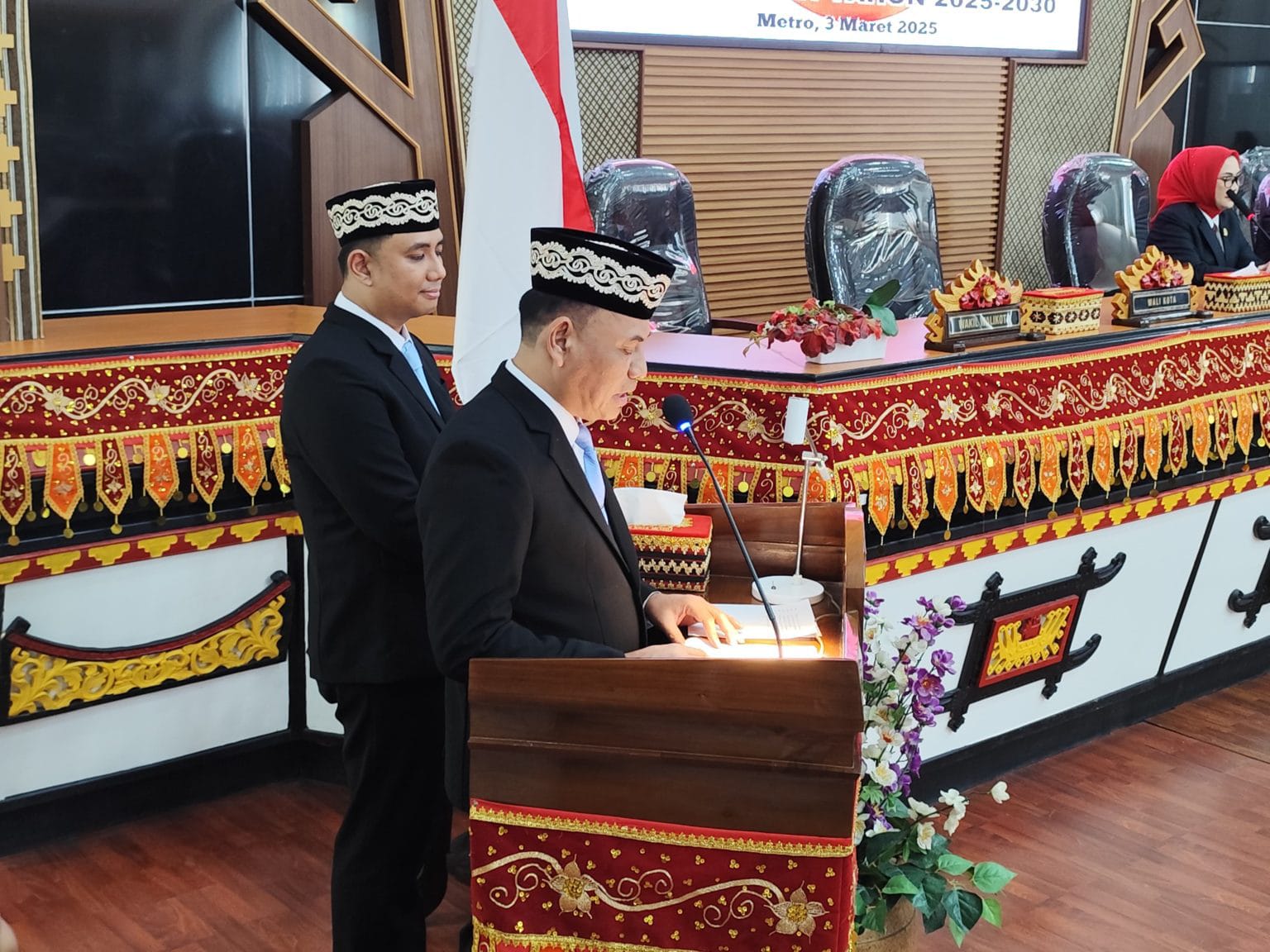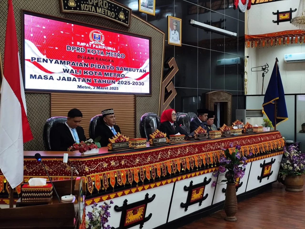 Metro — Rapat Paripurna Dewan Perwakilan Rakyat Daerah (DPRD) Kota Metro, dalam Rangka Penyampaian Pidato Sambutan Walikota Masa Jabatan Tahun 2025-2030, acara berlangsung di ruang sidang DPRD setempat, Senin (03/03/2025). Ketua DPRD Kota Metro, Ria Hartini menyampaikan selamat untuk Walikota dan Wakil Walikota Metro Periode 2025-2030. “Atas nama DPRD Kota Metro dan seluruh masyarakat Kota Metro, kami mengucapkan selamat atas dilantiknya Walikota Metro dan Wakil Walikota Metro, H. Bambang Iman Santoso dan Dr. M. Rafieq Adi Pradana semoga dapat memegang amanah dan menjalan tugas dengan sebaik-baiknya, membawa Kota Metro ke…