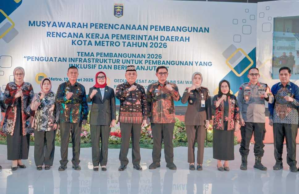Metro — Pemerintah Kota (Pemkot) Metro menggelar Musyawarah Rencana Pembangunan (Musrenbang) tingkat kota rencana kerja tahun 2026. Acara berlangsung di Gedung Sessat Agung Bumi Sai Wawai, Kamis (13/3/2025). Walikota Metro, Bambang Iman Santoso mengatakan, pentingnya Musrenbang sebagai bagian dari perencanaan pembangunan daerah yang harus selaras dengan kebijakan nasional dan provinsi. “Forum ini menjadi momen penting untuk menyelaraskan aspirasi masyarakat dan memastikan pembangunan yang efektif serta berorientasi pada kesejahteraan masyarakat,” katanya. Dia menyampaikan, pembangunan Kota Metro Tahun 2026 akan menitikberatkan pada penguatan infrastruktur, seperti perbaikan jalan, penanganan banjir, serta optimalisasi lampu penerangan…