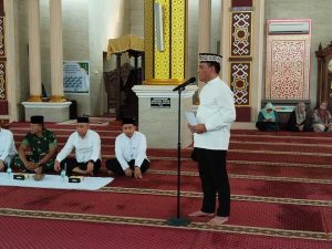 Wali Kota Metro H.Bambang Iman Santoso mengucapkan selamat datang kepada jemaah haji dan mengucapkan syukur bahagia dan bangga dapat bersama-sama menghadiri dan menyaksikan penyambutan jemaah Haji Kloter 28 JKG Kota Metro.